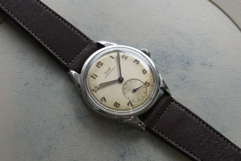 40~50年代のティソはボーイズサイズに近いサイズが多く(それはそれで可愛いのですが)、ラージケースはなかなか見かけません。