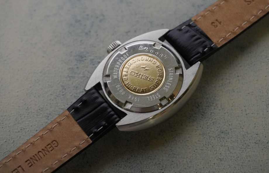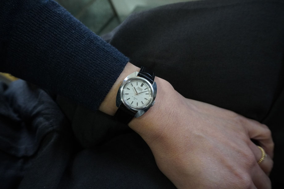 文字盤にスーペリア表記が入った初期型の文字盤で、卵型ケースの形状から45キングセイコーを思わせます。